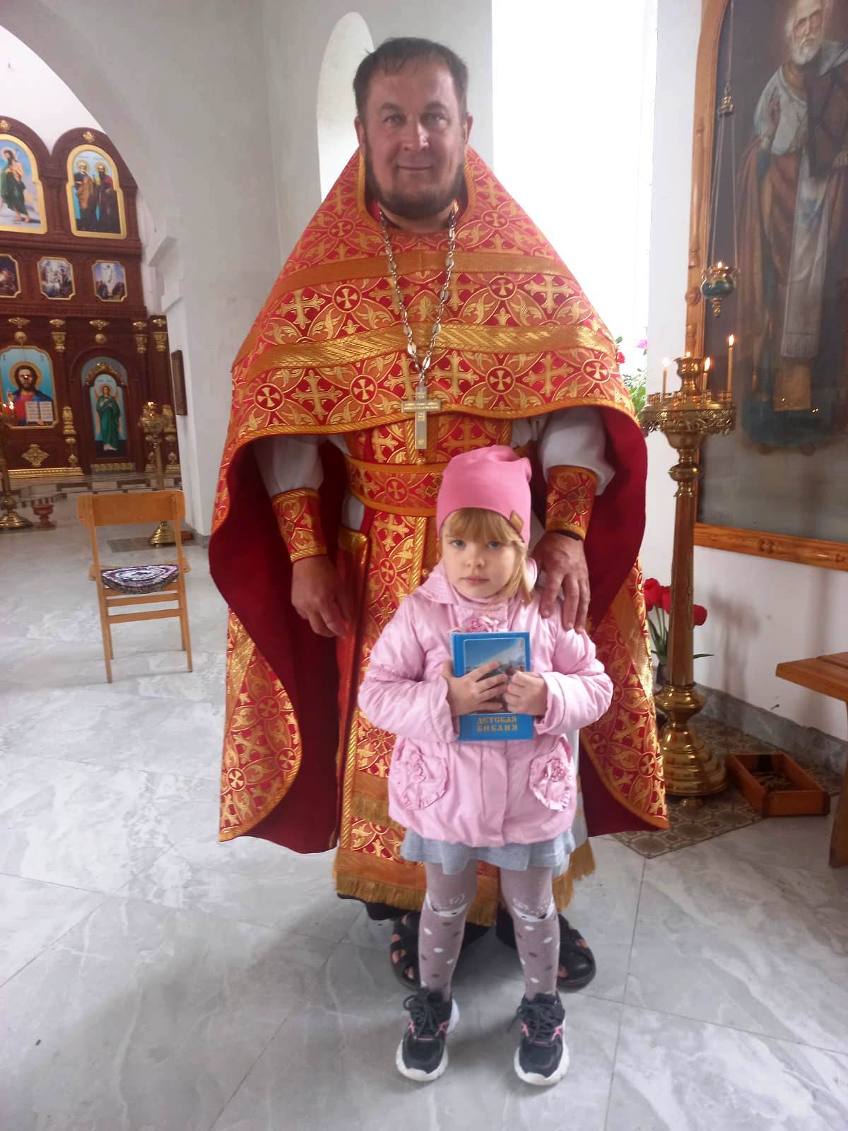 О.Николай благодарит р. Б. Луизу (г. Москва) за большую благотворительную деятельность в храме.